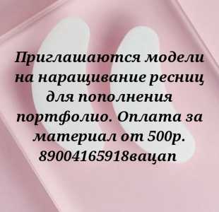 Приглашаются модели на наращивание ресниц к начинающему сертифицированному мастеру для пополнения портфолио.